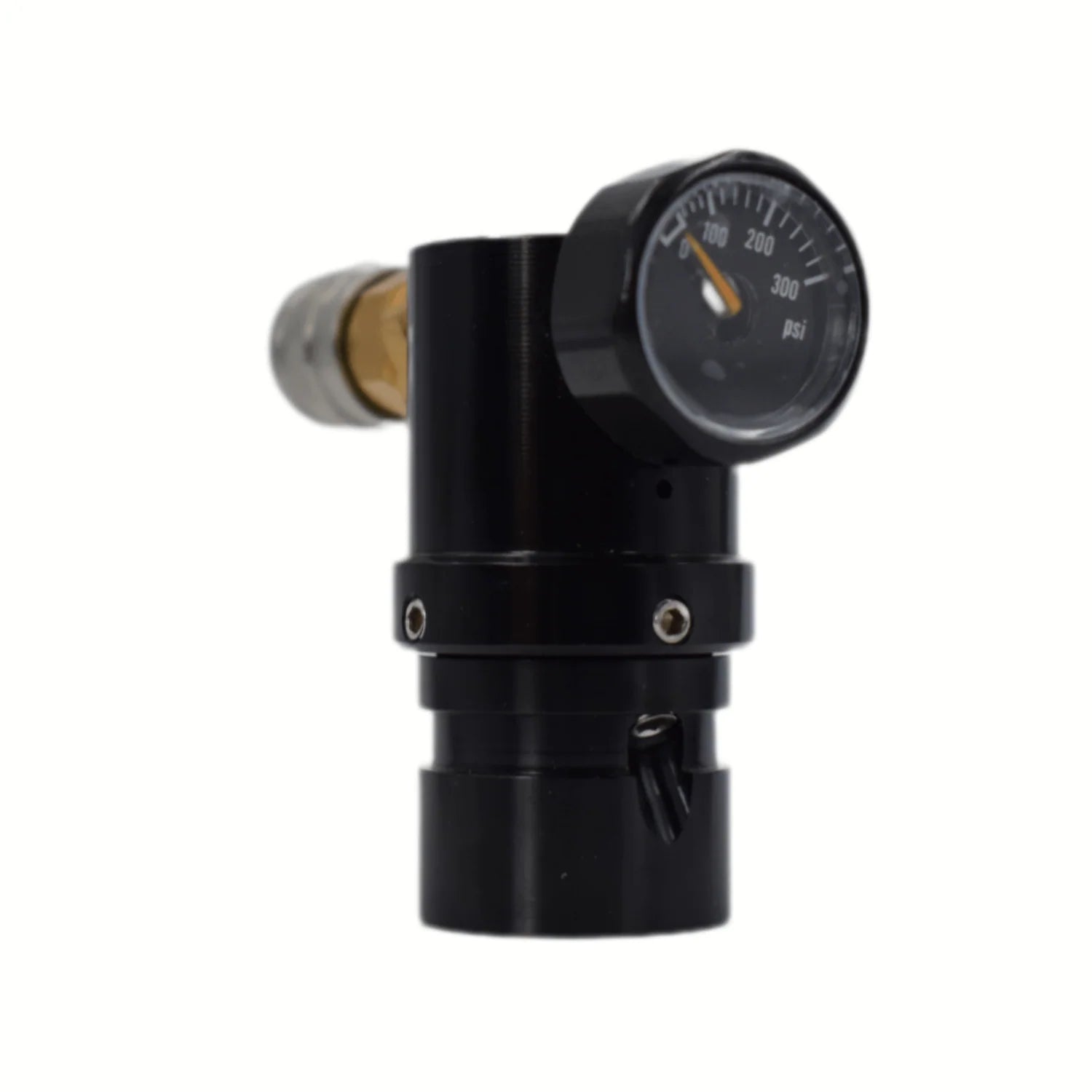 Bevestig de regelaar op de gasfles en stel een begindruk van ongeveer 40 psi in. Draai vervolgens de stelschroef langzaam met de klok mee tot je de gemiddelde werkdruk bereikt.